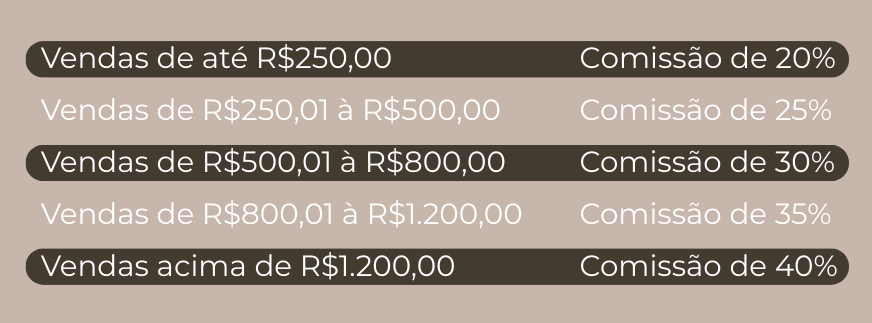 Comissões que crescem junto com você